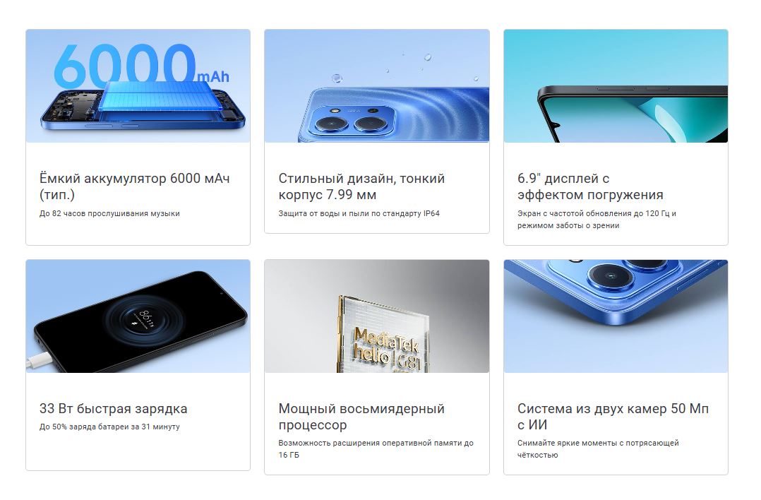 • Смартфон Redmi 15C 8/256GB Blue/Синий
